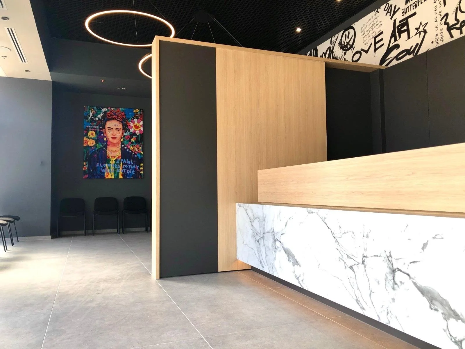 Situé à la Valentine, Marseille, ce cabinet dentaire a été rénové en venant rompre avec les codes traditionnels du genre. Pensé comme une galerie d’art, celui-ci est rythmé par un travail graphique fort et contemporain.